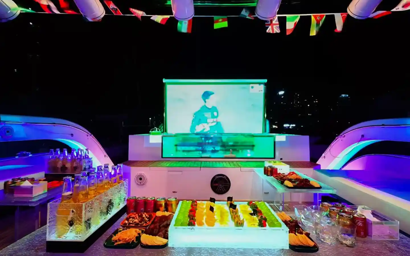 На верхней палубе создаётся настоящий dance-floor под открытым небом. Именно музыка и вид ночного города делают этот круиз уникальным и неизменно популярным.
